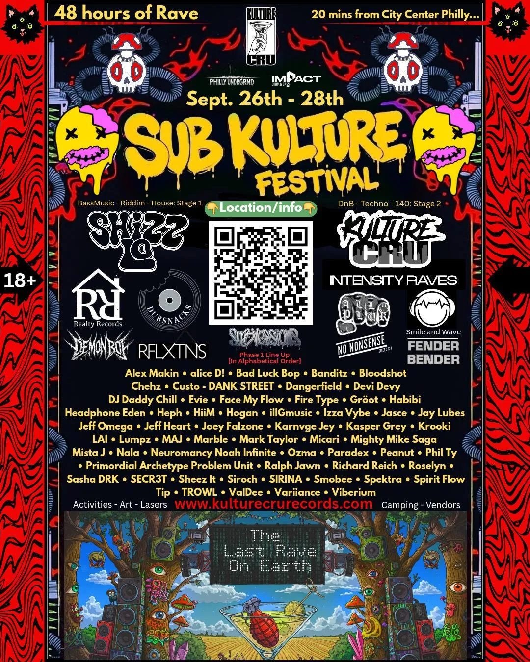 Join everyone for a one-of-a-kind underground rave experience at Sub Kulture 2025—an exclusive post-apocalyptic rave that fuses Philly’s thriving underground rave scene with festival-grade production.
